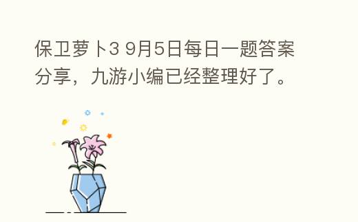 摘要:问题:可以让怪物返回起点的道具叫地雷么?答案:lb不是小编解说:这题很简单,地雷一听就知道是炸弹啦,怎么可能是返回起点的道具呢。关注了萝卜的微信公众号之后点击最右边的阿波互动,选择其中的每日一题就可以来答题了。每天会有不一样的问题,答对即,保卫萝卜3 9月5日每日一题答案分享,九游小编已经整理好了。9月5日保卫萝卜3每日一题答案分享。今天的问题很简单,因为只要回答是或者不是就可以了,如果你第一遍答错了,可以继续第二遍,反正两个答案其中一